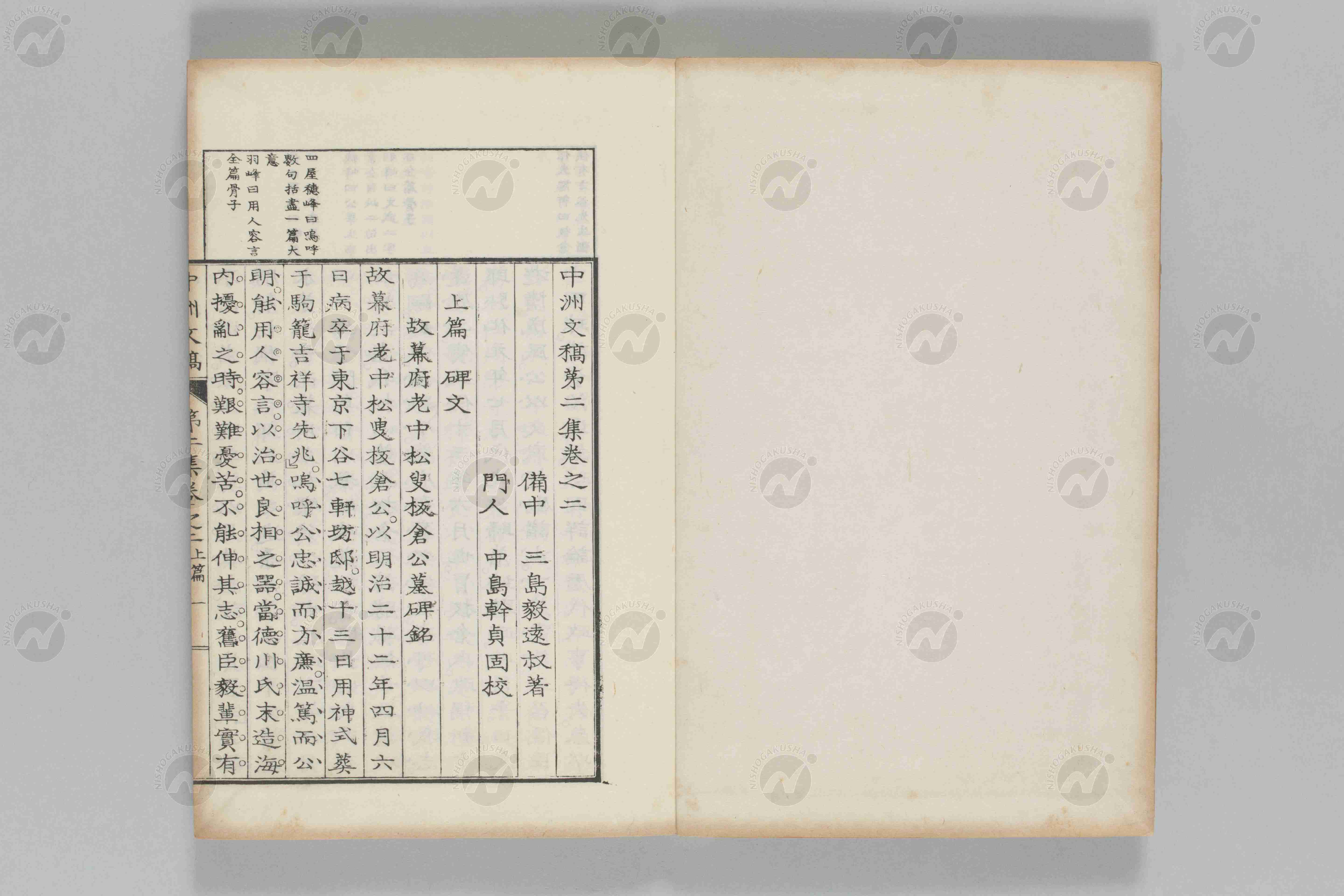 日本漢学画像データベース 0069|中洲文稿第二集三巻【日本漢文】|明治三十一年東京三島毅刊本 二松学舎蔵版