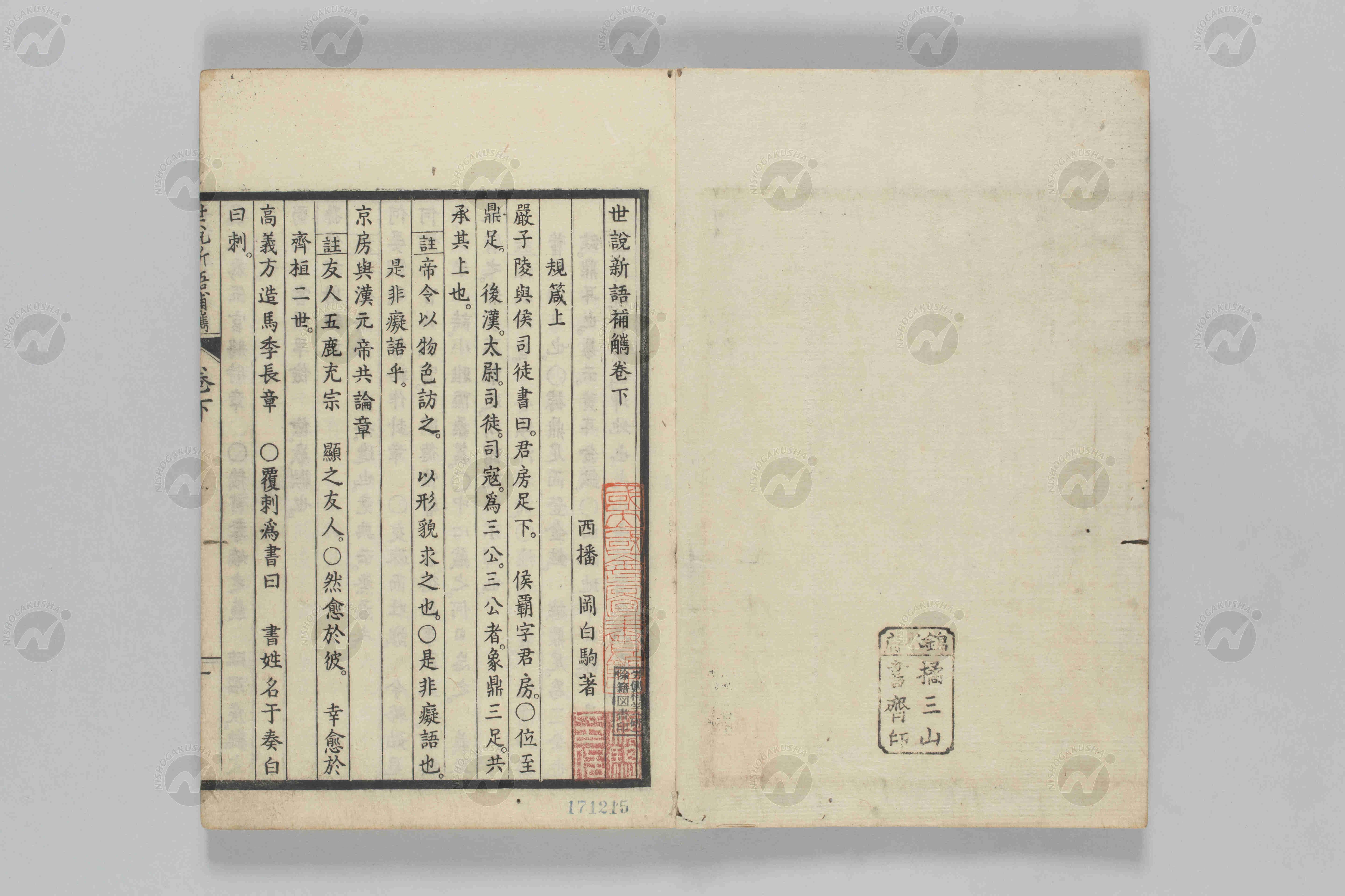 0484|世説新語補觽二巻【日本漢文】|岡白駒著 寛延二年(一七四九)風月荘左衛門等本